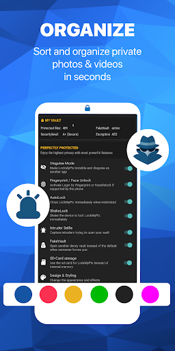 اپلیکیشن LockMyPix Safe Photo Vault یا همان گاو صندوق امن عکس و فایل ها یکی از قدرتمندترین ابزارهای امنیتی اندروید برای پنهان سازی و رمزگذاری اطلاعات شخصی است. این برنامه توسط شرکت معتبر Fourchars طراحی شده و با استفاده از سیستم رمزگذاری پیشرفته ی AES CTR 256-bit (در سطح بانکی)، امنیتی بی نظیر برای عکس ها، ویدیوها و اسناد خصوصی شما فراهم می کند. نسخه ی حاضر، پرمیوم و آنلاک شده است که به شما اجازه می دهد از تمامی امکانات حرفه ای برنامه بدون محدودیت استفاده کنید.