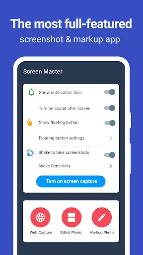 اگر به دنبال یک اپلیکیشن حرفه ای و قدرتمند برای ثبت اسکرین شات های باکیفیت هستید، Screen Master Pro یکی از بهترین گزینه هایی است که می توانید روی گوشی اندرویدی خود نصب کنید. این برنامه کاربردی توسط شرکت Blossgraph توسعه یافته و توانسته با امکانات متنوع، رابط کاربری ساده و عملکرد دقیق خود، محبوبیت زیادی بین کاربران اندروید به دست آورد.