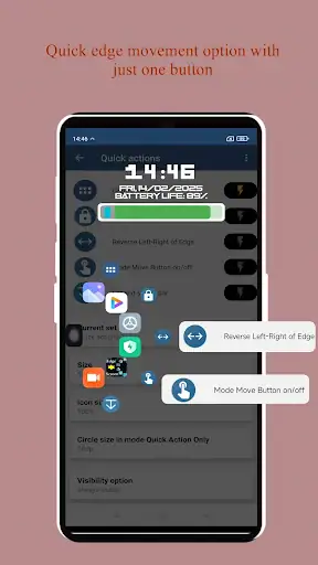 رابط گرافیکی و طراحی مدرن این برنامه، عملکردی جذاب و ساده دارد. با سفارشی سازی دایره ی کناری (Edge Circle) می توانید لیستی از اپلیکیشن های پرکاربرد، برنامه های اخیر (Recent Apps)، میانبرهای سیستمی (مثل Wi-Fi، بلوتوث، GPS) و حتی دستورات حرکتی (Gestures) را در اختیار داشته باشید. این ویژگی باعث می شود تا همه چیز تنها در یک حرکت انگشت قابل کنترل باشد.