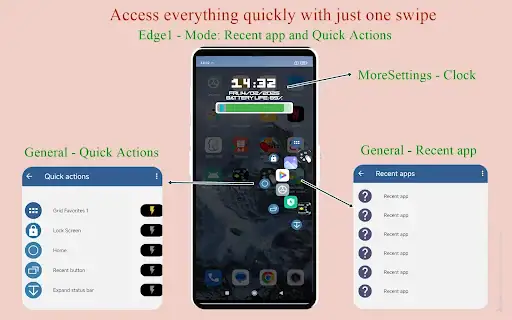 در Swiftly Switch شما می توانید تنها با لمس یا کشیدن انگشت از لبه ی صفحه نمایش، به برنامه های پر استفاده، بازی ها، تنظیمات سیستم و حتی مخاطبین مورد علاقه تان دسترسی داشته باشید — بدون اینکه لازم باشد از برنامه ی فعلی خارج شوید! این ویژگی باعث می شود تا تجربه ای روان و سریع از کار با گوشی داشته باشید، مخصوصاً در زمان هایی که می خواهید بین چند اپلیکیشن در لحظه جابه جا شوید.