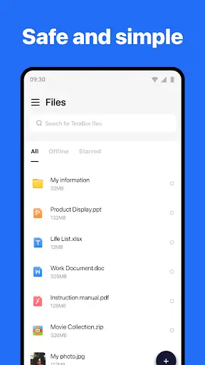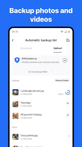 با نصب Terabox شما می توانید تمام فایل های مهم خود از جمله عکس ها، ویدئوها، موسیقی ها، اسناد و فایل های کاری را به صورت خودکار در فضای ابری امن ذخیره کنید. دیگر لازم نیست نگران از دست رفتن اطلاعات یا پر شدن حافظه گوشی باشید؛ چرا که تمام داده ها در فضای ابری تراباکس پشتیبان گیری می شوند و در هر لحظه و از هر دستگاهی قابل دسترسی هستند.