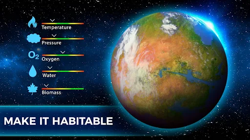 هر سیاره ویژگی های خاص خود را دارد — از مریخ و ونوس گرفته تا قمرهای زحل و سیارات فراخورشیدی. شما باید با مدیریت دقیق منابع، تعادل بین دما، فشار و رطوبت را برقرار کنید تا شرایط زندگی برای انسان ها مهیا شود. بازی با دقت علمی بالا طراحی شده و تمام داده های آن بر اساس مدل های واقعی ناسا شبیه سازی شده اند.