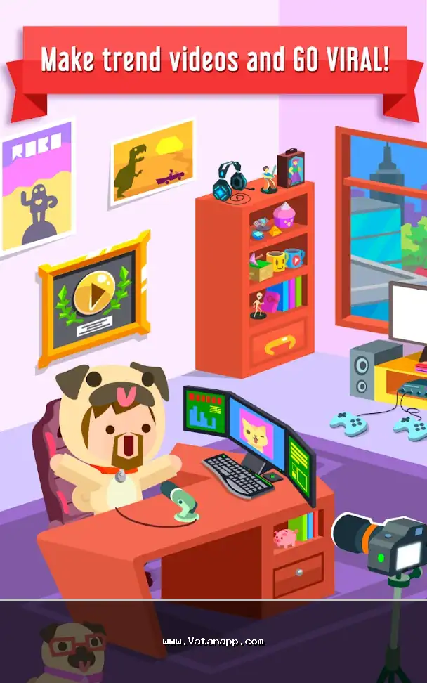 اگر همیشه رویای یوتیوبر شدن و تولید محتوا برای میلیون ها نفر را در سر دارید، Vlogger Go Viral یک بازی عالی برای شماست. این بازی جذاب که توسط استودیوی Tapps Games ساخته شده، شما را در دنیای تولید محتوا و مدیریت یک کانال یوتیوب قرار می دهد. با دانلود این بازی اندروید شما در نقش یک ویدیو بلاگر شروع به کار می کنید و هدف شما تبدیل شدن به یک یوتیوبر مشهور است.