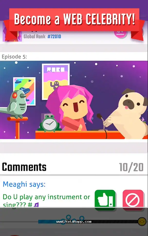 برای دریافت این بازی شبیه سازی تولید محتوا می توانید آن را به صورت مستقیم از طریق سایت وطن اپ دانلود نسخه مود یا نسخه اصلی کرده و رویای یوتیوبر شدن خود را تحقق بخشید.